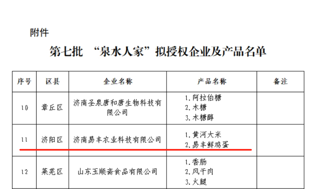 近日,濟(jì)南易豐農(nóng)業(yè)科技有限公司憑借卓越的產(chǎn)品品質(zhì)與品牌影響力,入選“泉水人家”第七批授權(quán)企業(yè),旗下產(chǎn)品長田樂享超鮮蛋與易豐黃河大米同步獲得“泉水人家”授權(quán)產(chǎn)品,這標(biāo)志著長田實(shí)業(yè)在農(nóng)業(yè)產(chǎn)業(yè)化與品牌化道路上邁出堅(jiān)實(shí)一步。