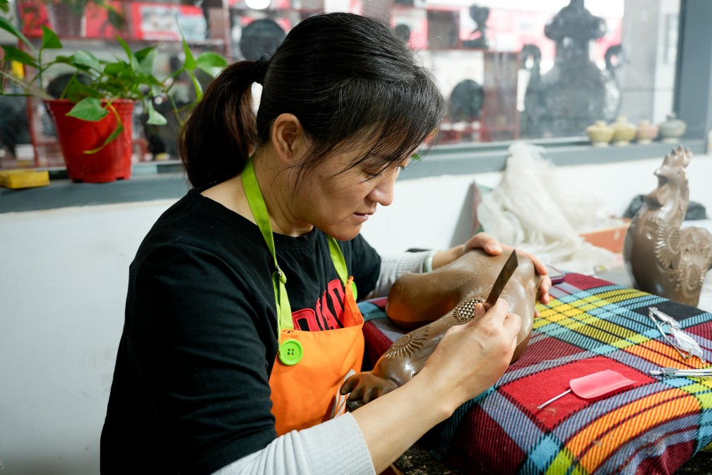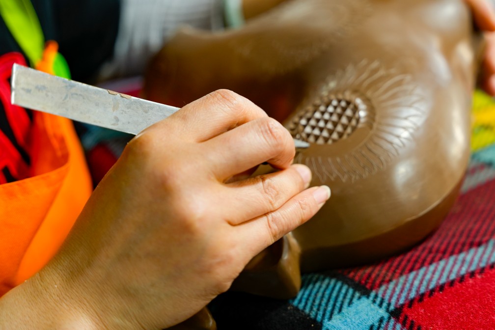 輕握刻刀,游走于泥坯之上